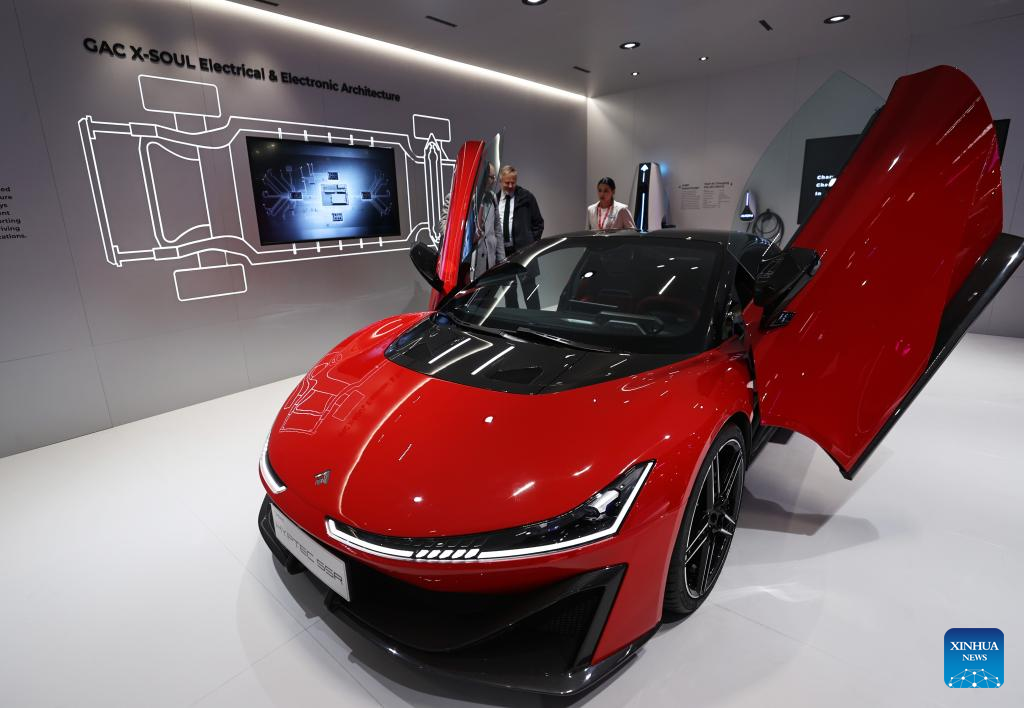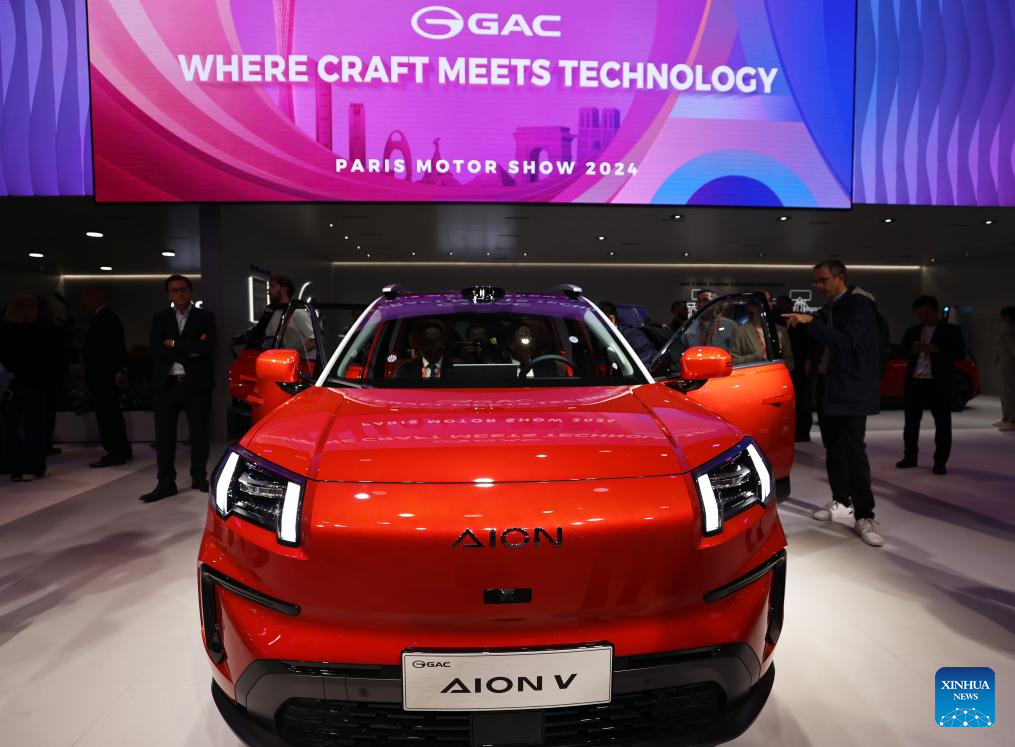 People visit the pavilion of the Guangzhou Automobile Group Co., Ltd. (GAC Group) at the 2024 Paris Motor Show during the media day in Paris, France, Oct. 14, 2024. (Xinhua/Gao Jing)