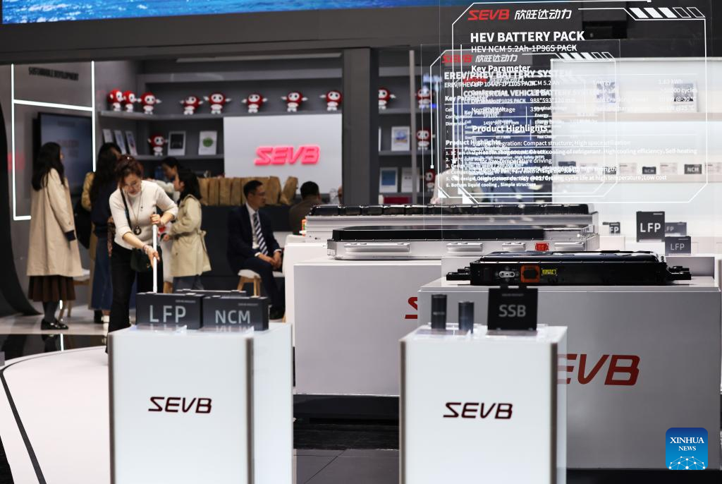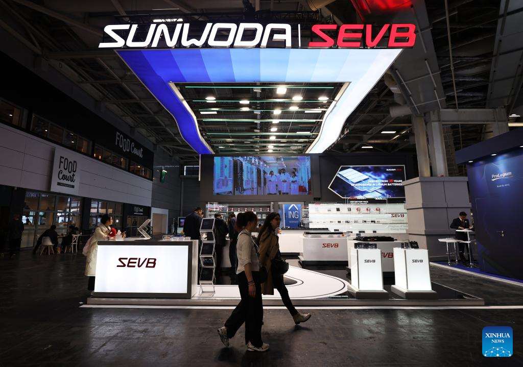 People visit the pavilion of Chinese company Sunwoda at the 2024 Paris Motor Show during the media day in Paris, France, Oct. 14, 2024. (Xinhua/Gao Jing)