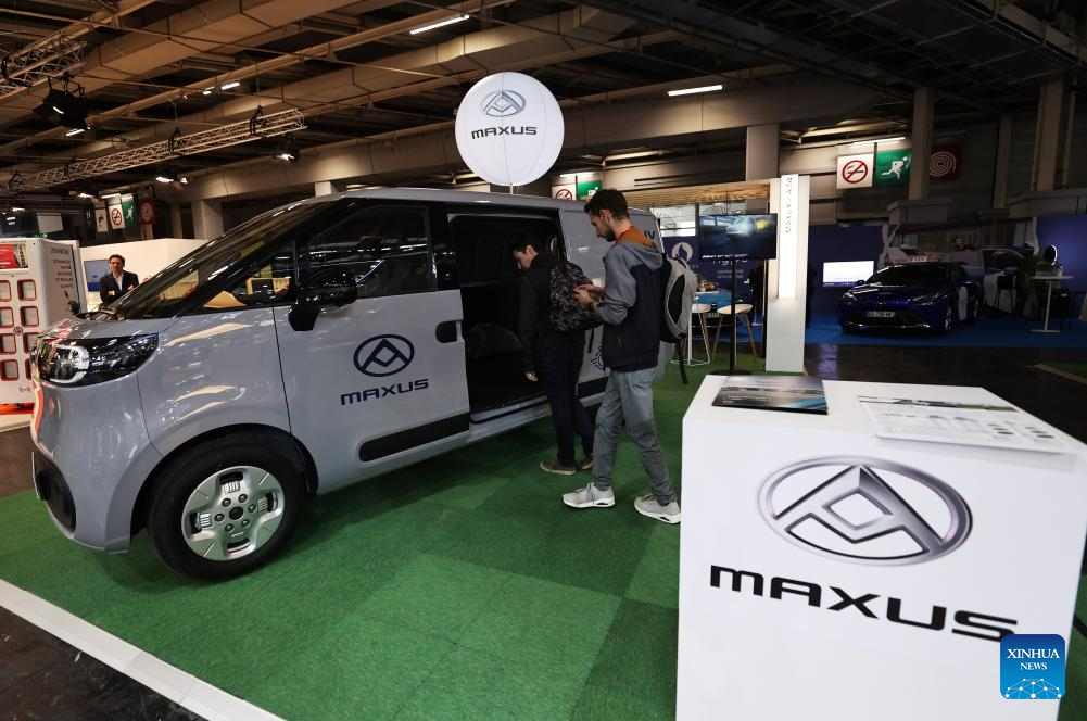 People visit the pavilion of Chinese carmaker MAXUS at the 2024 Paris Motor Show during the media day in Paris, France, Oct. 14, 2024. (Xinhua/Gao Jing)