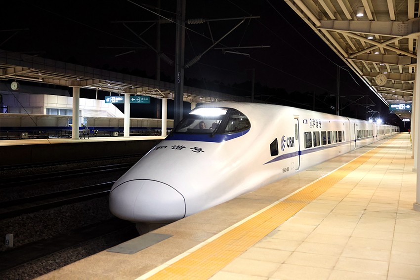The train is a converted CRH2A train, with a maximum speed of 250 kilometers per hour, boasting advantages like a large carrying capacity, low energy consumption, and high efficiency.