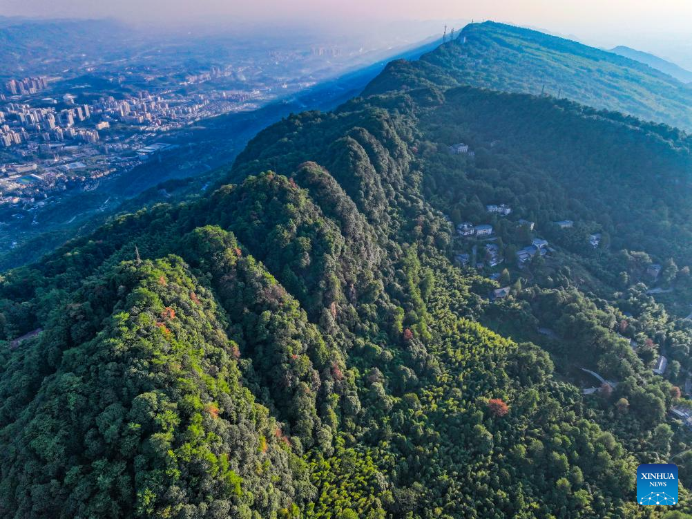 Located by the Jialing River in Chongqing, the national nature reserve of Jinyun Mountain is an important ecological barrier for the downtown area of this municipality city. (Xinhua/Wang Quanchao)