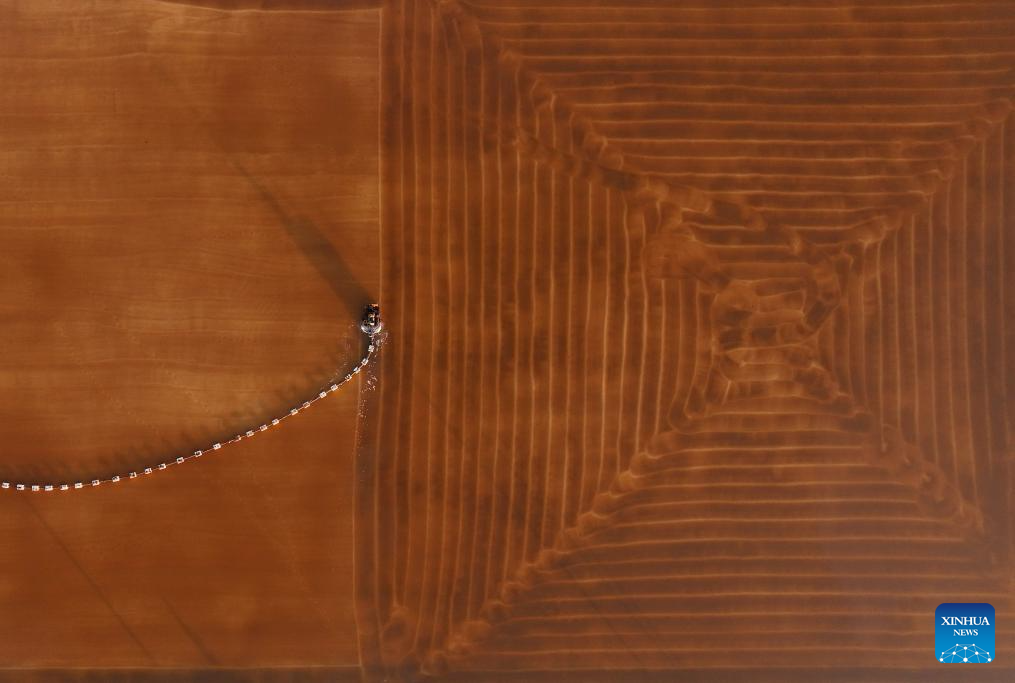 An aerial drone photo taken on Oct. 16, 2024 shows a view of the Nanpu salt field in Caofeidian District of Tangshan, north China's Hebei Province. (Xinhua/Yang Shiyao)