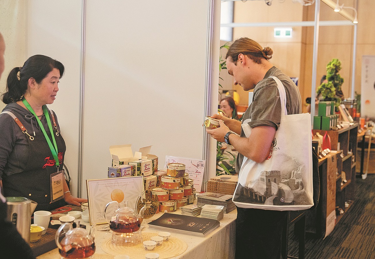 A visitor selects Chinese tea during China-Australia tea culture week in Canberra on Nov 24. (HU JINGCHEN/XINHUA)