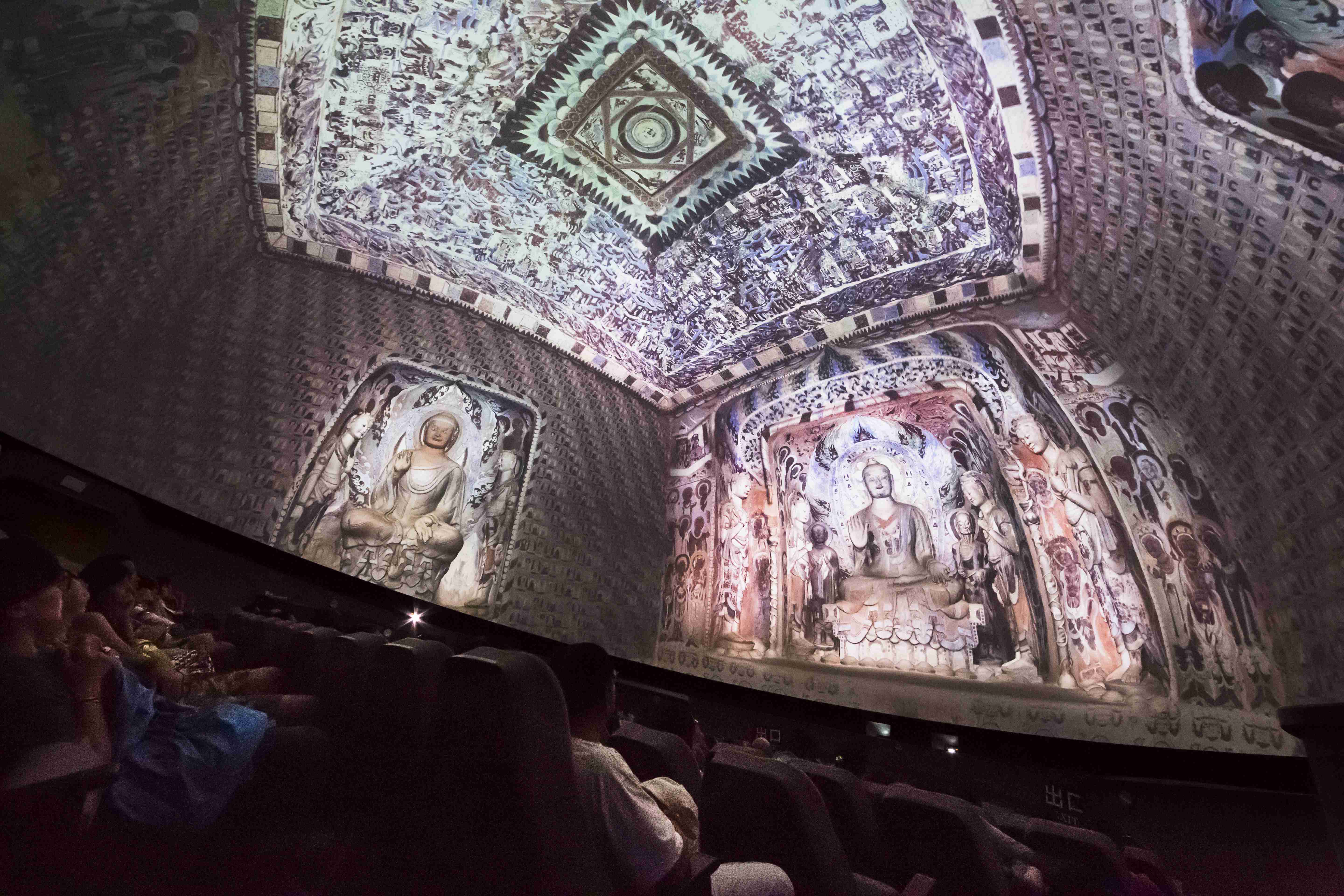 Visitors watch a full-dome digital film at the digital center in Dunhuang, Gansu Province. (Photo provided by Dunhuang Academy)