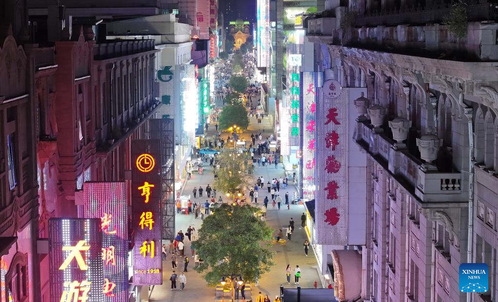 People visit the Golden Street commercial area in north China's Tianjin, Oct. 16, 2024. (Xinhua/Zhao Zishuo)