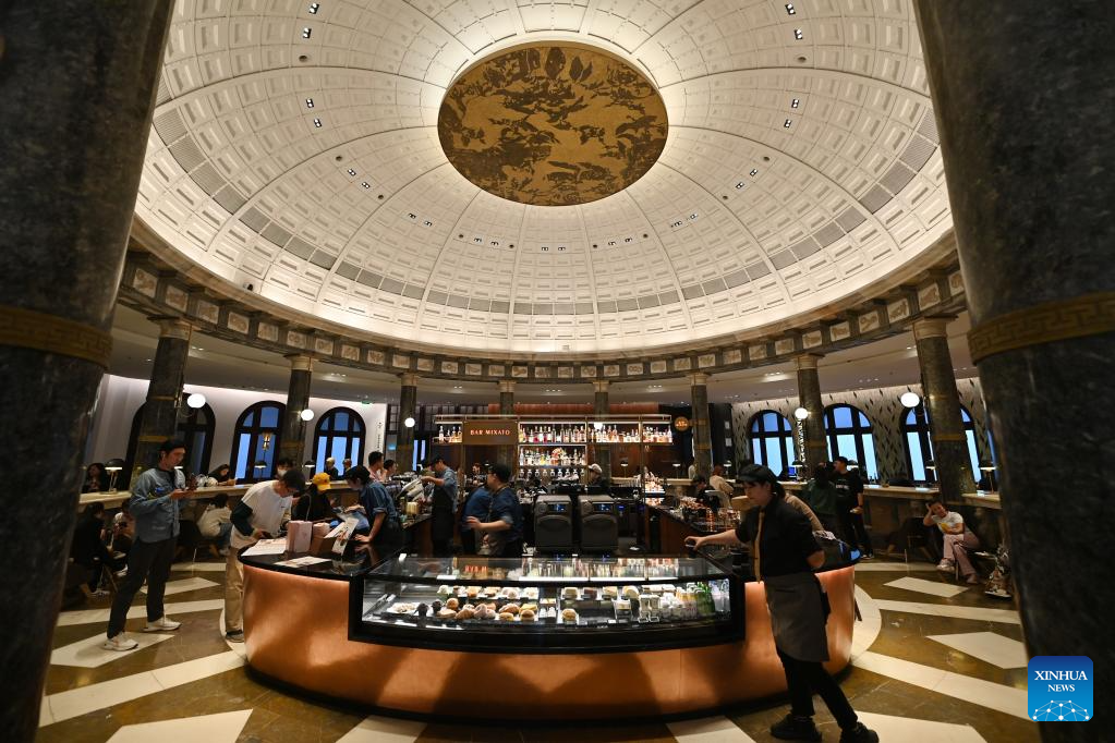 This photo shows an interior view of a Starbucks in the Golden Street commercial area in north China's Tianjin, Oct. 13, 2024. (Xinhua/Li Ran)