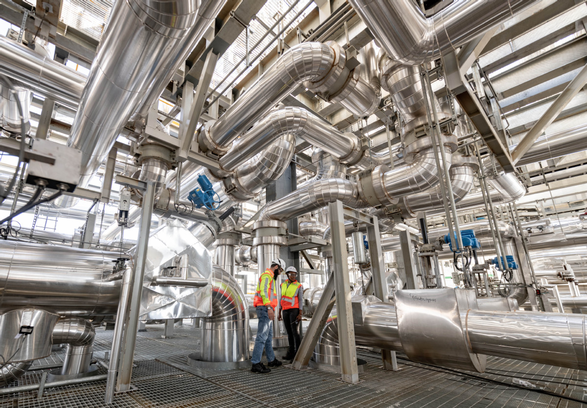 Employees work on a solar thermal power project in Northern Cape, South Africa, on August 20. (ZHANG YUDONG/XINHUA)