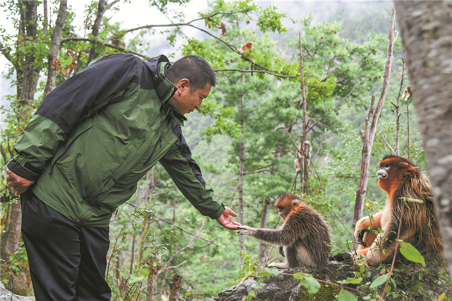"As the monkeys feast on leaves in the trees, and I snack on biscuits below, a bond of trust has formed between us. Seeing the golden snub-nosed monkeys thrive here is the greatest honor for me," Tang Yulin says, reflecting on his work.