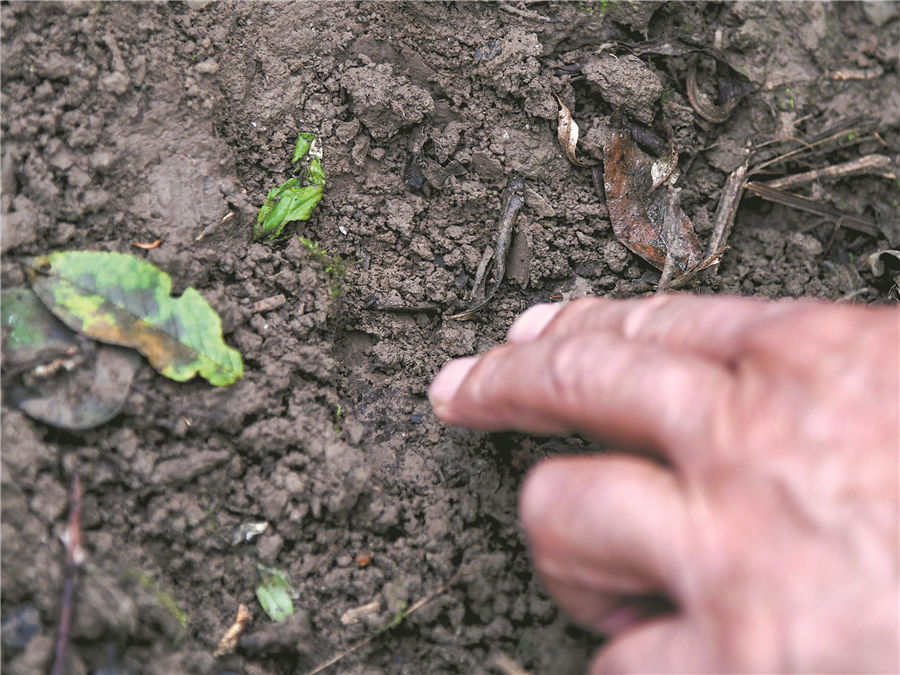 Deer footprints are identified during Tang Yulin's patrol. (WANG XI/XINHUA)