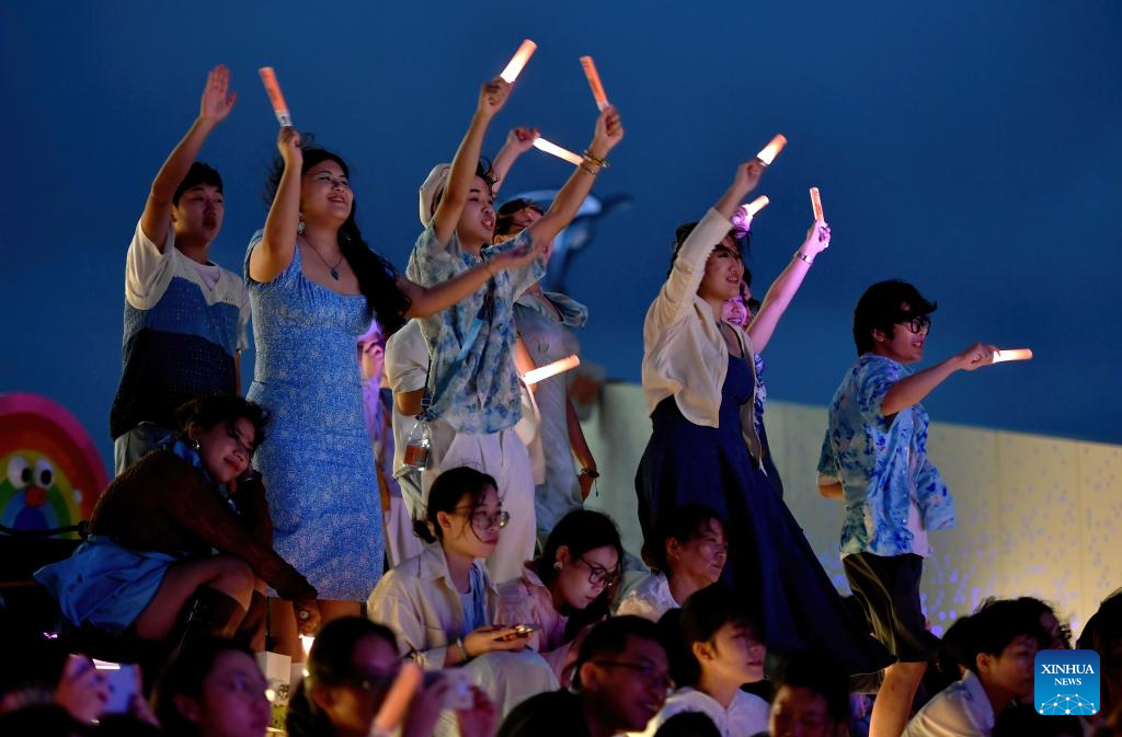 Audience are pictured during the China Pingtan Island Chorus Festival in Pingtan, southeast China's Fujian Province, Oct. 19, 2024. The China Pingtan Island Chorus Festival kicked off here on Saturday. (Xinhua/Wei Peiquan)