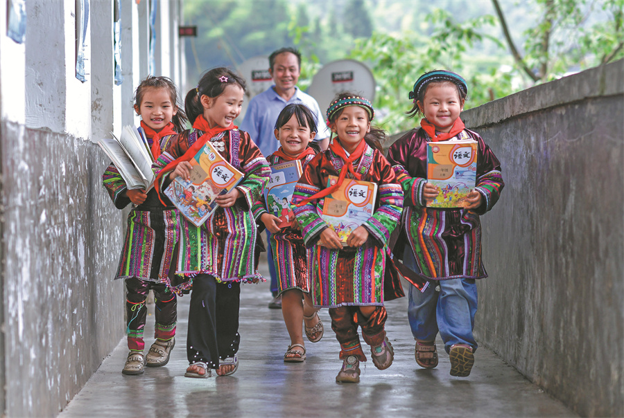 Students leave their classroom after a class on Sept 6. (YANG WENBIN/XINHUA)