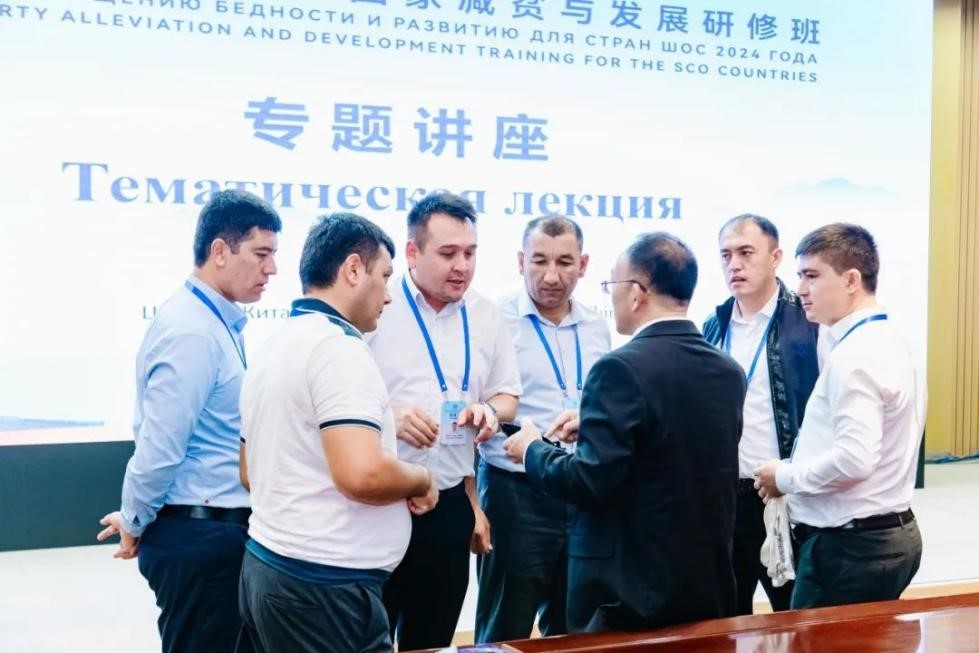 Participants from the Shanghai Cooperation Organization (SCO) countries share their perspectives with lecturers during a seminar on poverty reduction and development in 2024. (Photo from the WeChat official account of the Qingdao Municipal Bureau of Agriculture and Rural Affairs)