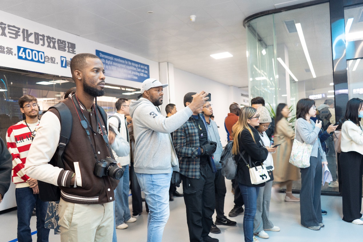 Inside an exhibition hall of the company, real-time monitoring footage shows how its intelligent workshops operate, with automated guided vehicles (AGVs) shuttling back and forth smoothly, attracting journalists to take pictures.