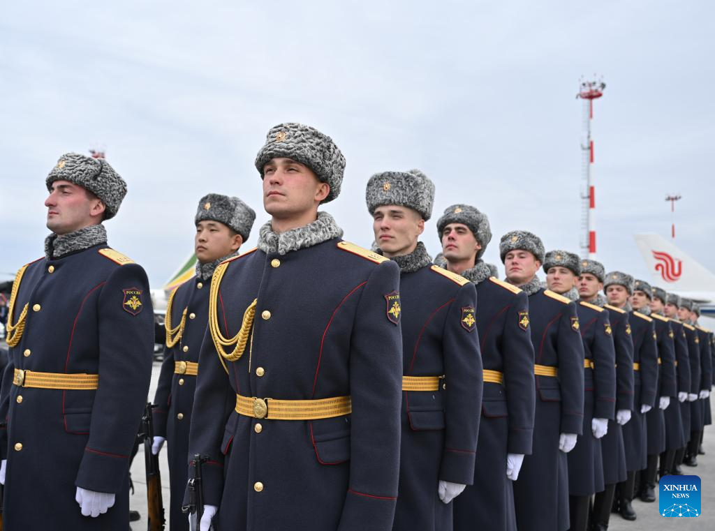Russian officials greeted Xi at the airport. Guards of honor lined up on both sides of a red carpet to salute the Chinese leader, and Russian youths dressed in national costumes welcomed him with traditional courtesy.