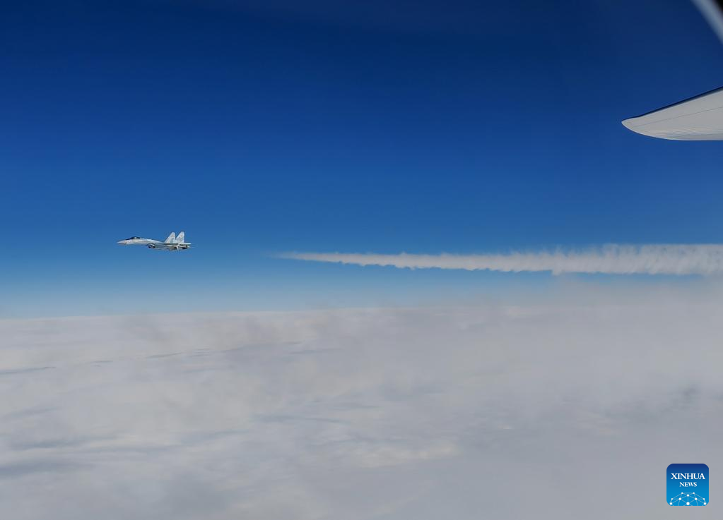 A Russian fighter jet escorts Chinese President Xi Jinping's plane on Oct. 22, 2024. Xi arrived in Russia's Kazan on Tuesday for the 16th BRICS Summit at the invitation of President of the Russian Federation Vladimir Putin. (Xinhua/Xie Huanchi)