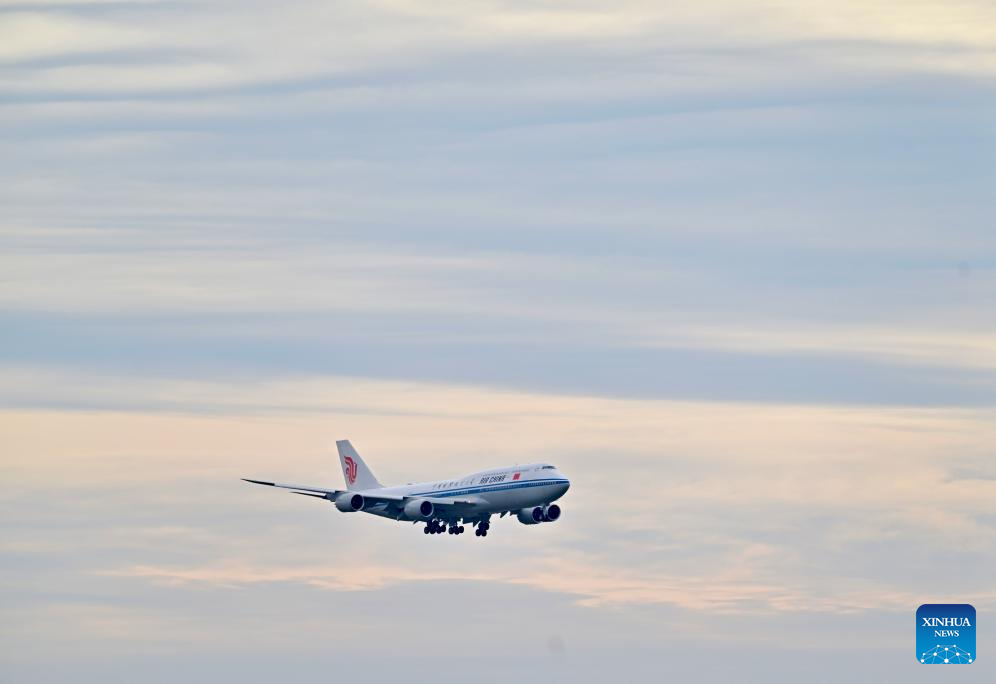 Chinese President Xi Jinping's plane arrives in Kazan, Russia, Oct. 22, 2024. Xi arrived in Kazan on Tuesday for the 16th BRICS Summit at the invitation of President of the Russian Federation Vladimir Putin. (Xinhua/Zhai Jianlan)