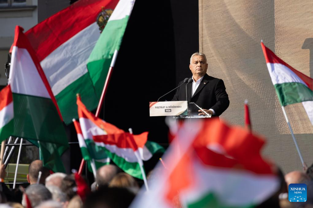 BUDAPEST, Oct. 23 (Xinhua) -- Hungarian Prime Minister Viktor Orban delivered a defiant speech in Budapest on Wednesday, marking the 68th anniversary of the 1956 revolution by emphasizing Hungary's determination to defend its national sovereignty against growing pressure from the European Union (EU).