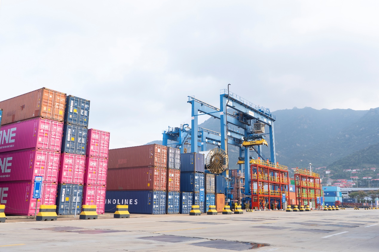 Photo taken on Oct. 22, 2024, shows containers neatly stacked in Lianyungang Port, Lianyungang city, east China's Jiangsu Province. (People's Daily Online/Chang Sha)