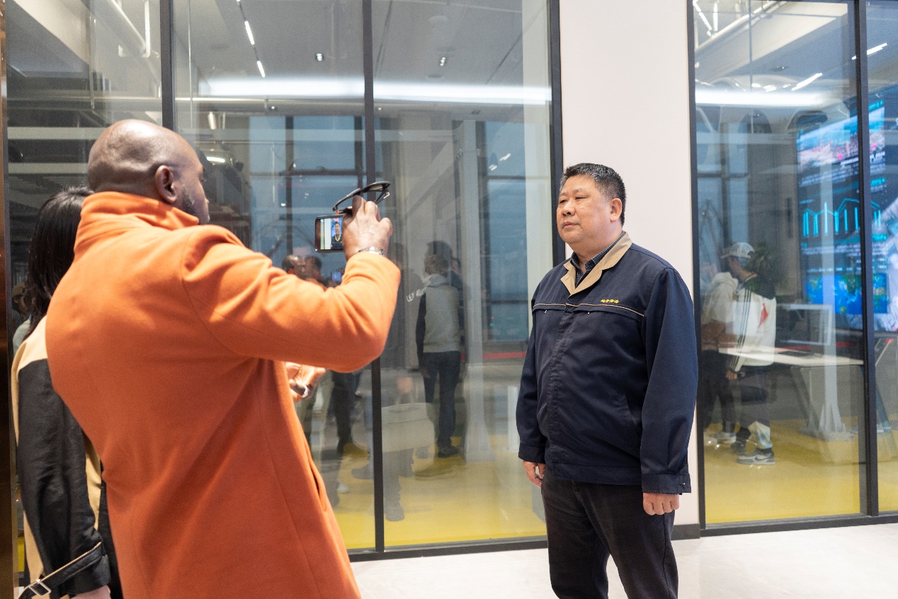 A foreign journalist watches a demonstration of how vehicles are transported in and out of a vertical smart parking garage, in Lianyungang Port, Lianyungang city, east China's Jiangsu Province, on Oct. 22, 2024. (People's Daily Online/Chang Sha)