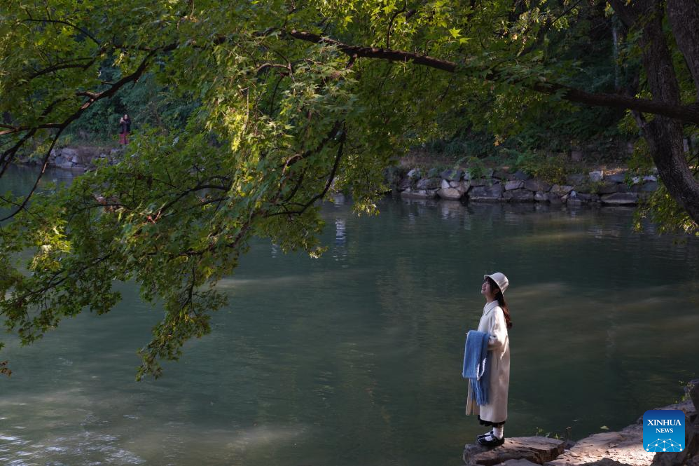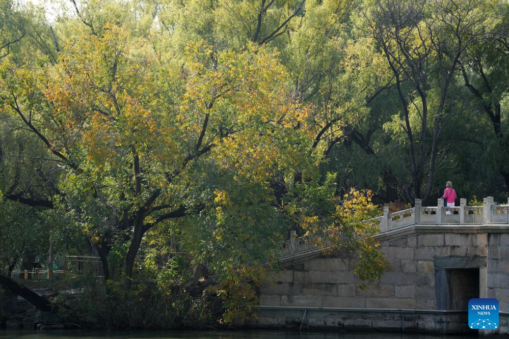 A tourist enjoys the autumn scenery at the Summer Palace in Beijing, capital of China, on Oct. 24, 2024. The Summer Palace is China's largest imperial park and among the most noted classical gardens in the world. In 1998, it was listed as one of the World Heritage Sites by UNESCO. (Xinhua/Xing Guangli)