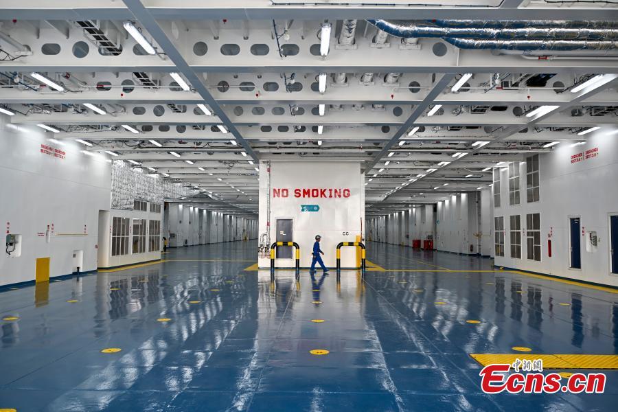 An interior view of China's first homegrown Ro-Pax ferry - GNV Polaris at Nansha port in Guangzhou, south China's Guangdong Province, Oct. 24, 2024. (Photo: China News Service/Chen Jimin)