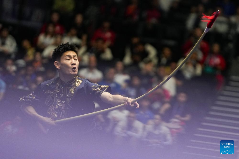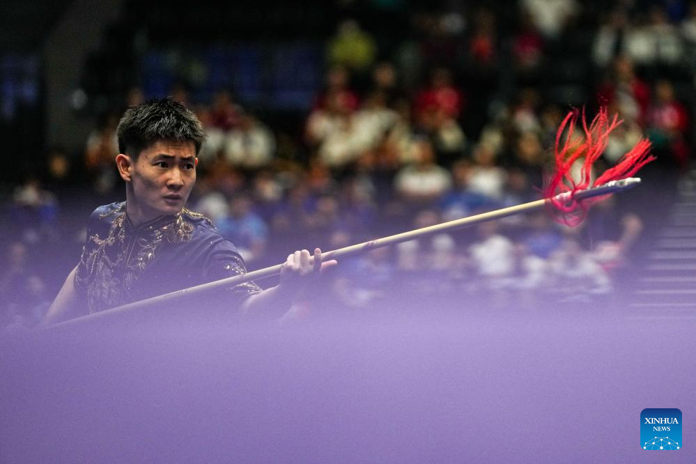 Zhang Qingchun of China competes during the Men's Qiangshu competition of the 3rd Taolu World Cup held in Yokohama, Japan, on Oct. 26, 2024. (Xinhua/Zhang Xiaoyu)