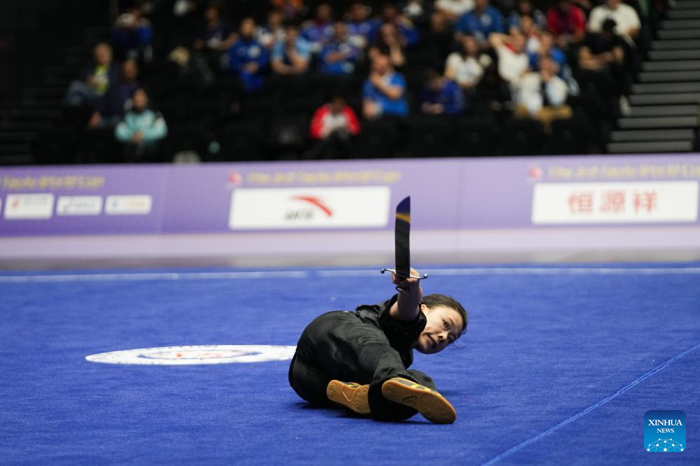Wu Jianing of China competes during the Women's Nandao competition of the 3rd Taolu World Cup held in Yokohama, Japan, on Oct. 26, 2024. (Xinhua/Zhang Xiaoyu)