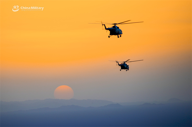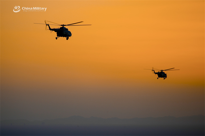Helicopters attached to a brigade under the Chinese PLA 81st Group Army take off in early morning for round-the-clock flight training on August 13th, 2024. (eng.chinamil.com.cn/Photo by Chen Kai)