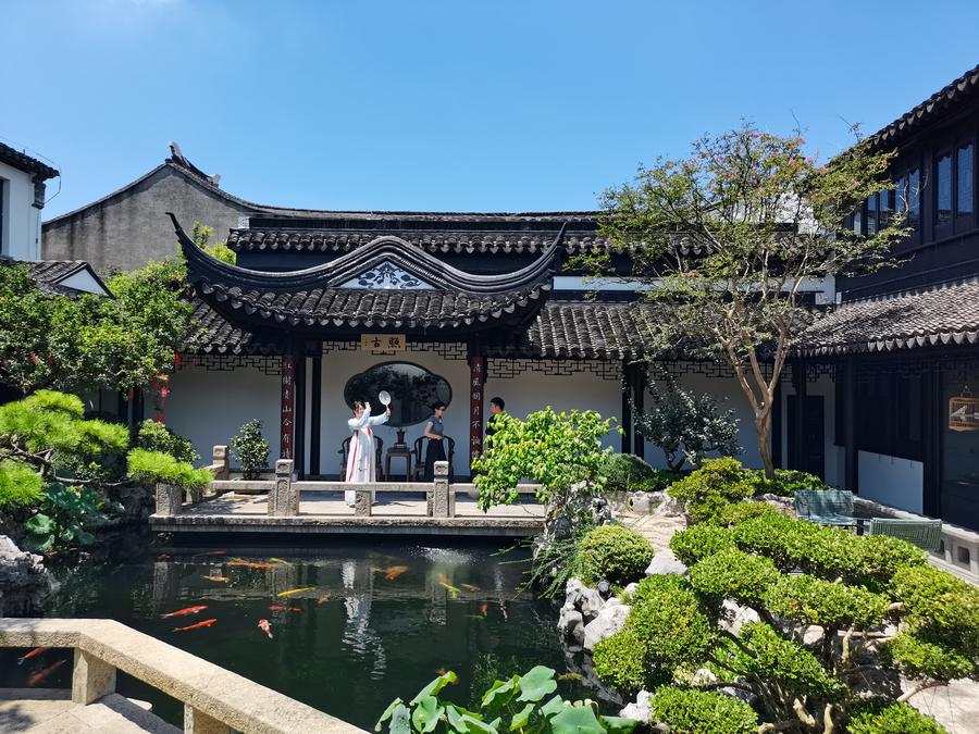 A scene of the Ping Jiang Song restaurant, part of the restoration program of Ding Mansion, is seen in Suzhou, east China's Jiangsu Province, July 31, 2024. (Xinhua/Jiang Wenxi)