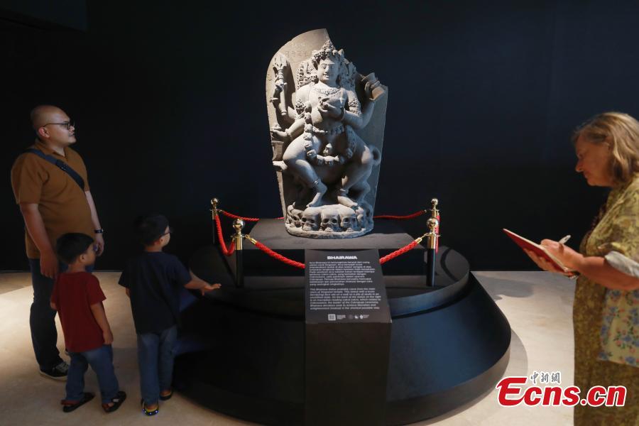 Visitors view an artifact, returned from the Netherlands, at the National Museum of Indonesia, Oct. 29, 2024. (Photo: China News Service/Wang Zhiquan)
