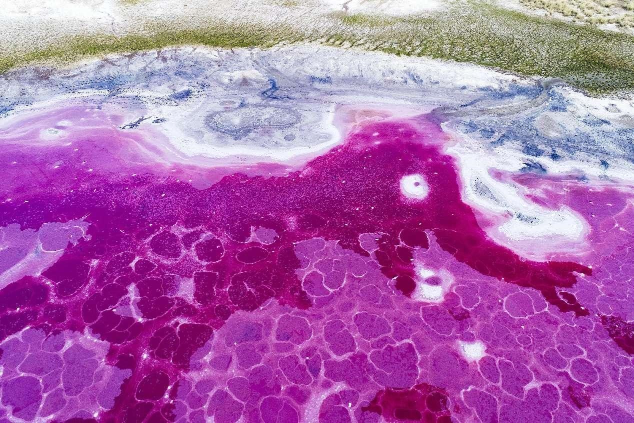"Due to its rich mineral elements and salt-loving organisms, the water of the Daghtu Lake displays different colors from spring to winter, such as light red, pink, and deep red," said Dong Zhibao, vice president of Shaanxi Normal University, who has long been studying the Badain Jaran Desert.