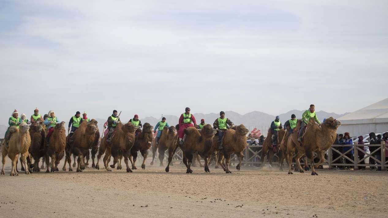 Naadam, also known as the "Three Manly Games" which features horse racing, archery and wrestling, is held in Badain Jaran township, Alxa Right Banner, Alxa league, north China's Inner Mongolia autonomous region, December 28, 2023. (People's Daily Online/Jiang Aiping)