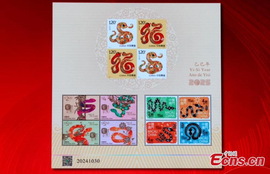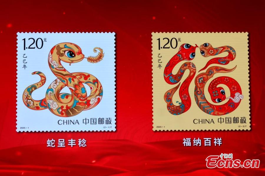 Inspired by Dunhuang murals and traditional customs, the stamps, integrating the image of the snake with auspicious meanings, will be released for sale on January 5, 2025.