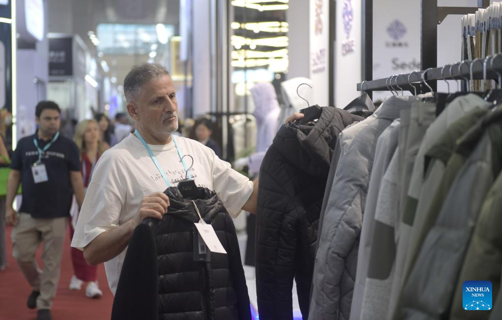 A merchant shops for clothes at the 136th China Import and Export Fair in Guangzhou, south China's Guangdong Province, Oct. 31, 2024. The third phase of the 136th China Import and Export Fair, popularly known as the Canton Fair, opened in Guangzhou on Thursday. (Xinhua/Lu Hanxin)