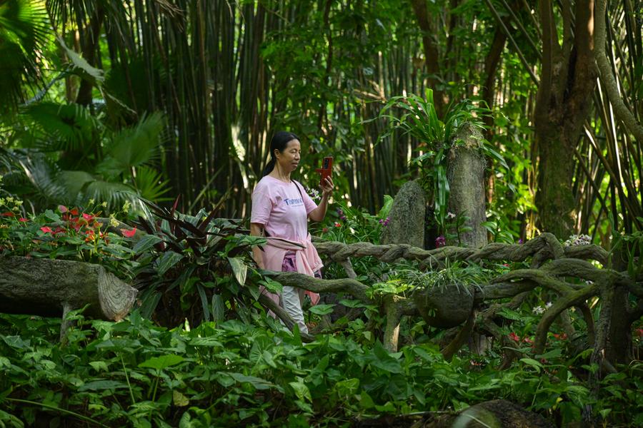 A tourist visits the Yanoda Rain Forest Cultural Tourism Zone in Baoting Li and Miao Autonomous County, south China's Hainan Province, Nov. 1, 2024. (Xinhua/Pu Xiaoxu)