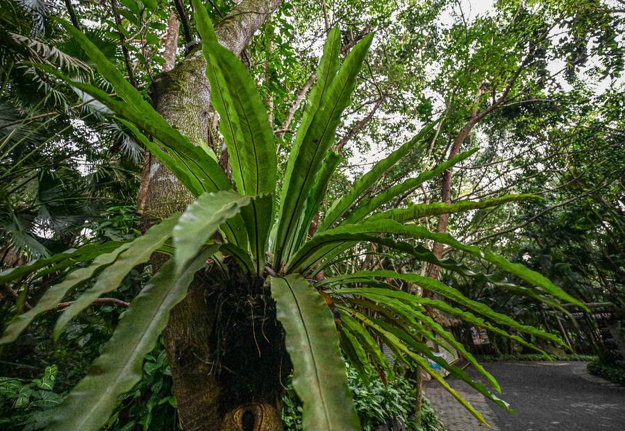 This photo taken on Nov. 1, 2024 shows a giant leaf at the Yanoda Rain Forest Cultural Tourism Zone in Baoting Li and Miao Autonomous County, south China's Hainan Province. (Xinhua/Pu Xiaoxu)