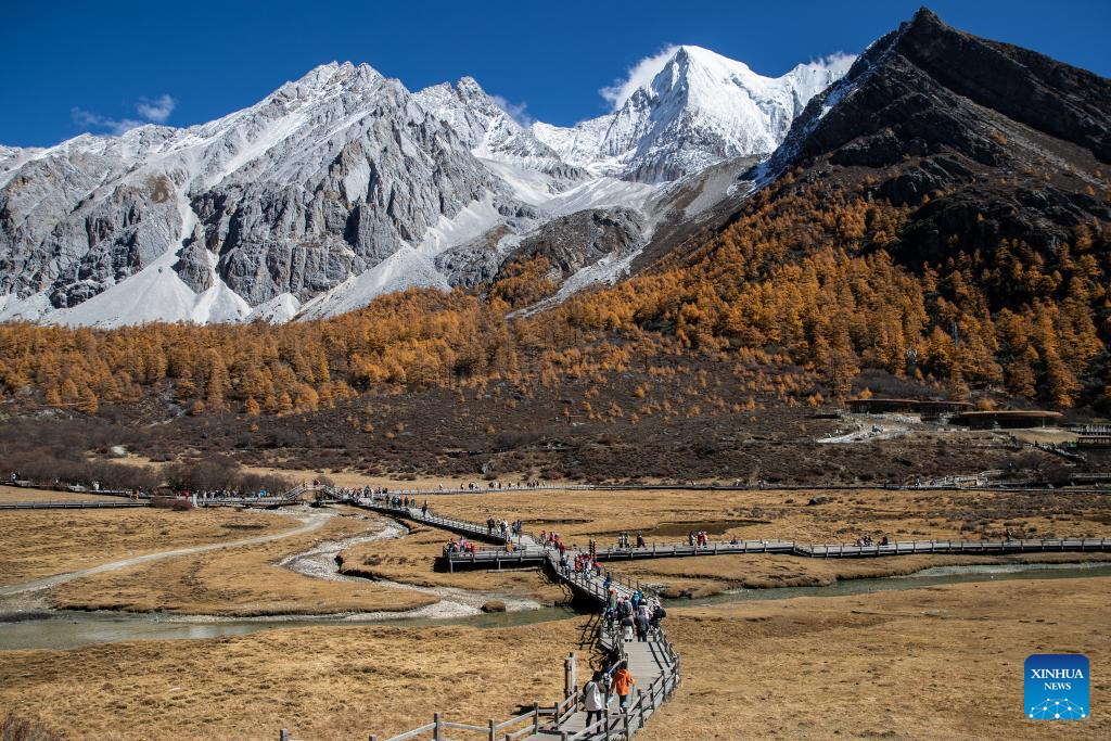 Tourists visit the Yading scenic spot in Daocheng County of Tibetan Autonomous Prefecture of Garze, southwest China's Sichuan Province, Oct. 31, 2024. (Xinhua/Chu Jiayin)