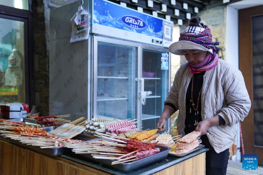 A staff member prepares food at a homestay at Yading scenic spot in Daocheng County of Tibetan Autonomous Prefecture of Garze, southwest China's Sichuan Province, Oct. 31, 2024. (Xinhua/Xu Bingjie)