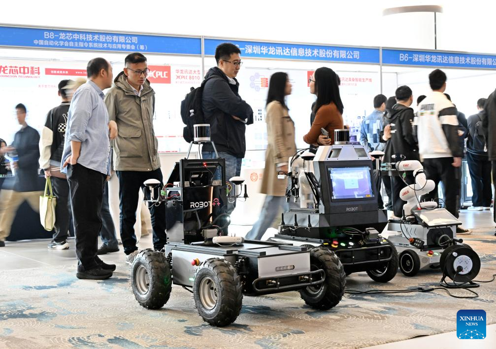 Participants visit the exhibition area of the 2024 China Automation Congress in Qingdao, east China's Shandong Province, Nov. 2, 2024. The 2024 China Automation Congress, which focuses on the deep integration of automation and artificial intelligence as well as explores the innovative development of new industries and technologies, would last from Nov. 1 to Nov. 3 here. (Xinhua/Li Ziheng)