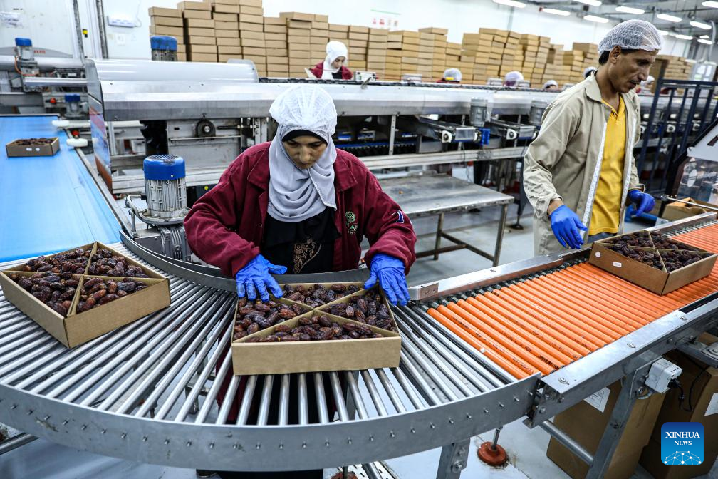 Workers pack dates at a production line of Linah Farms, a leading producer of Medjool dates in Egypt and the Middle East, in Menoufia Governorate, Egypt, Oct. 28, 2024.?(Xinhua/Ahmed Gomaa)