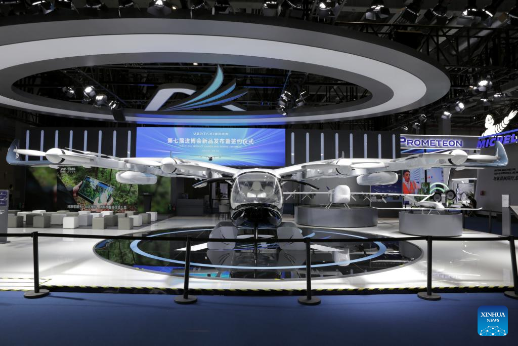 This photo taken on Nov. 4, 2024 shows the automobile exhibition area of the 7th China International Import Expo (CIIE) at the National Exhibition and Convention Center (Shanghai) in Shanghai, east China. The 7th CIIE will be held in Shanghai from Nov. 5 to 10. (Xinhua/Tang Rufeng)