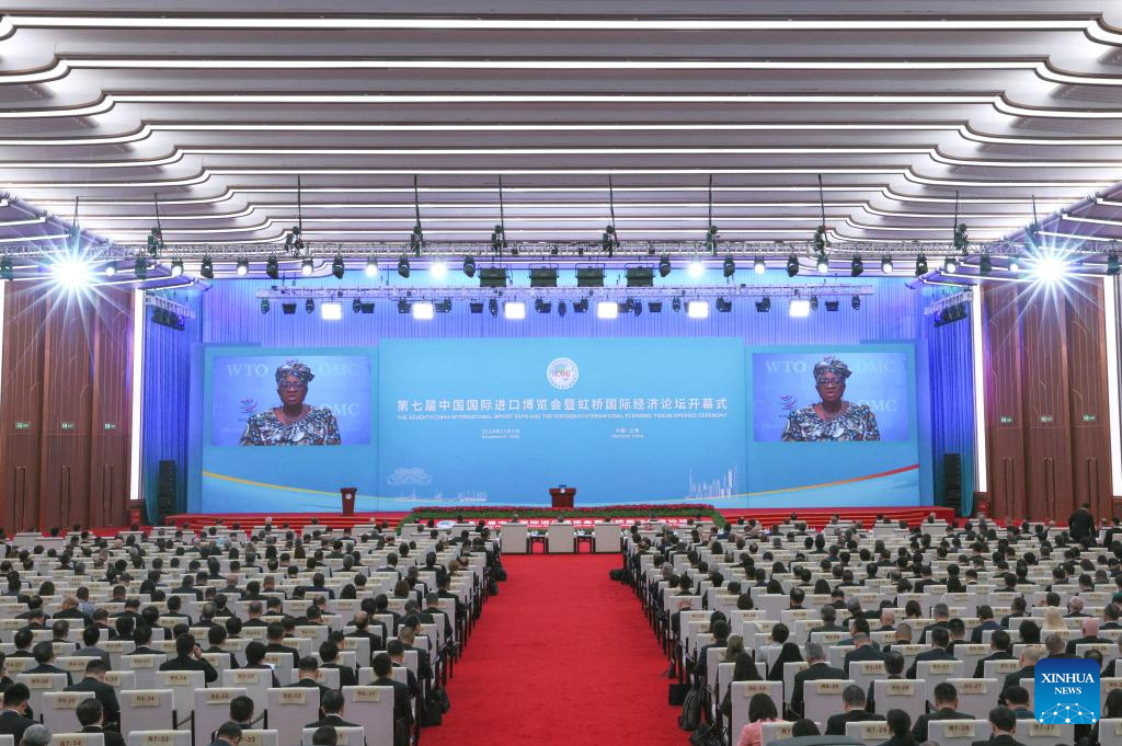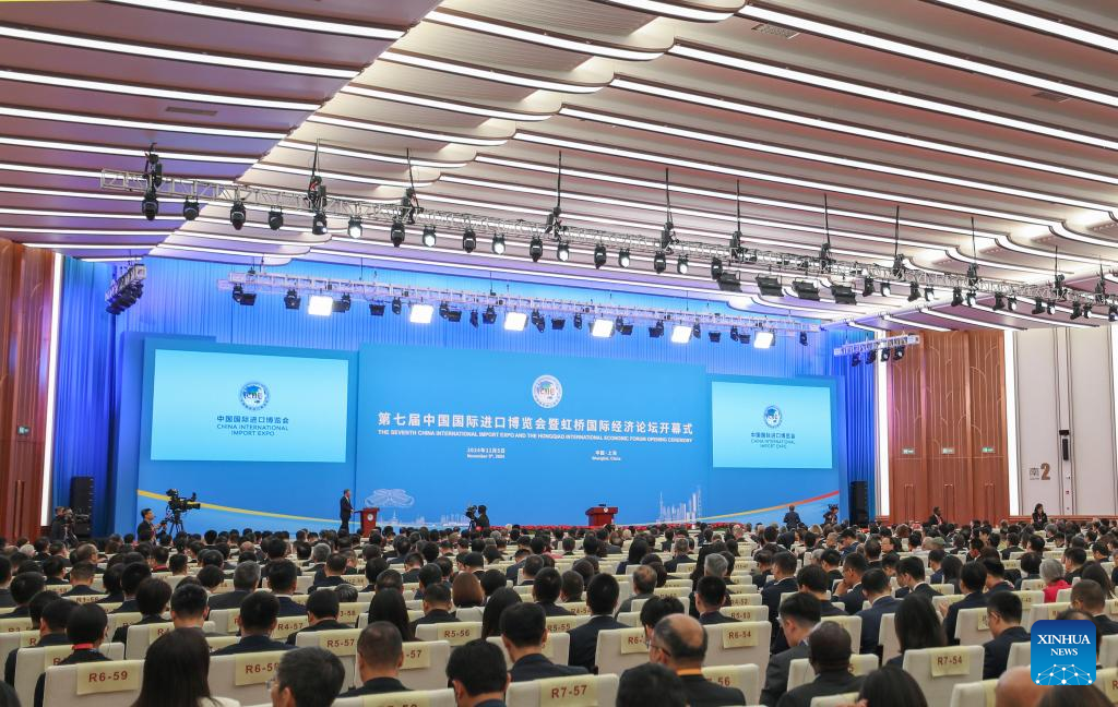 The opening ceremony of the seventh China International Import Expo (CIIE) and the Hongqiao International Economic Forum is held at the National Exhibition and Convention Center (Shanghai) in east China's Shanghai, Nov. 5, 2024. (Xinhua/Du Xiaoyi)
