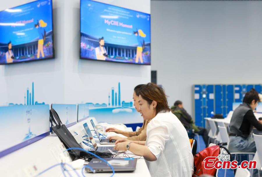 Journalists work at the media center of the 7th CIIE in Shanghai, Nov. 4, 2024. (Photo: China News Service/Jia Tianyong)