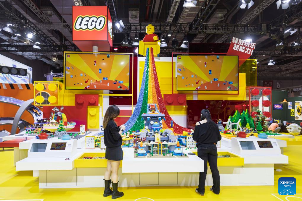 An installation is on display at the exhibition area of Lego during the seventh China International Import Expo (CIIE) in east China's Shanghai, Nov. 5, 2024. The newest edition of the CIIE, the world's first national-level exposition dedicated to imports, opened on Tuesday in Shanghai. (Xinhua/Wang Xiang)