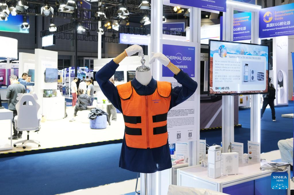 A smart temperature control working garment is on display during the seventh China International Import Expo (CIIE) in east China's Shanghai, Nov. 5, 2024. The newest edition of the CIIE, the world's first national-level exposition dedicated to imports, opened on Tuesday in Shanghai. (Photo by Zhou Xinyi/Xinhua)