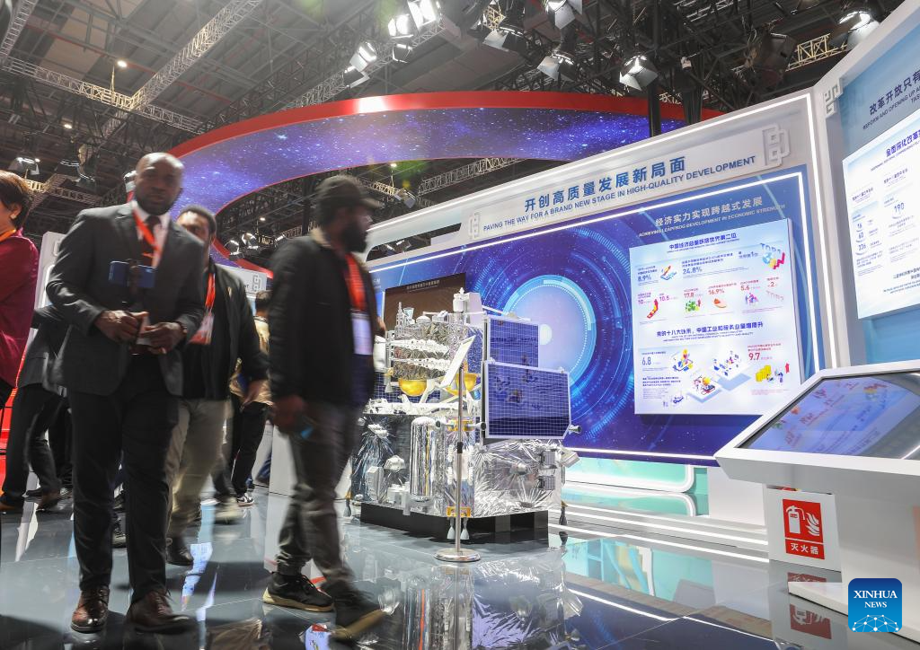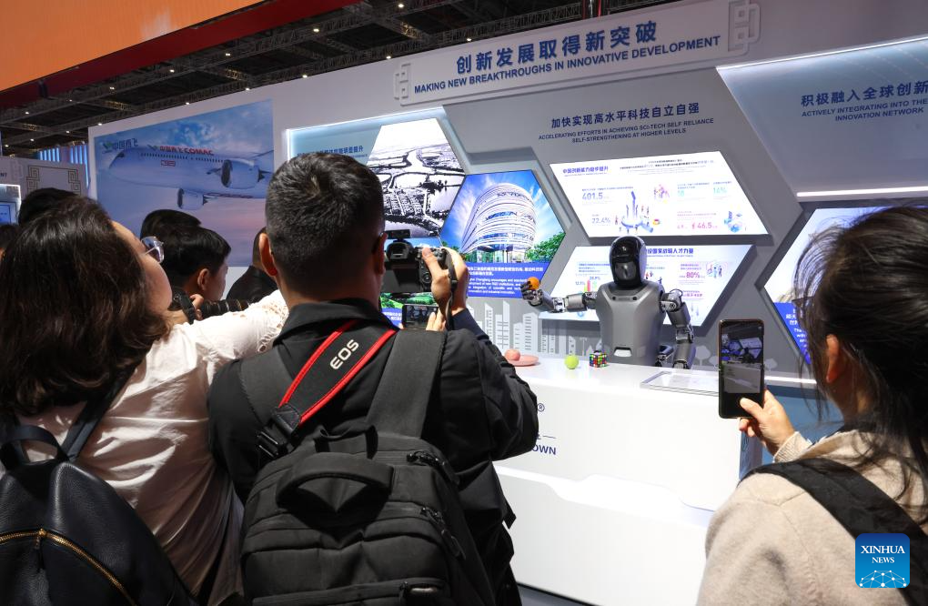 People visit the China Pavilion during the seventh China International Import Expo (CIIE) in east China's Shanghai, Nov. 5, 2024. The newest edition of the CIIE, the world's first national-level exposition dedicated to imports, opened on Tuesday in Shanghai.