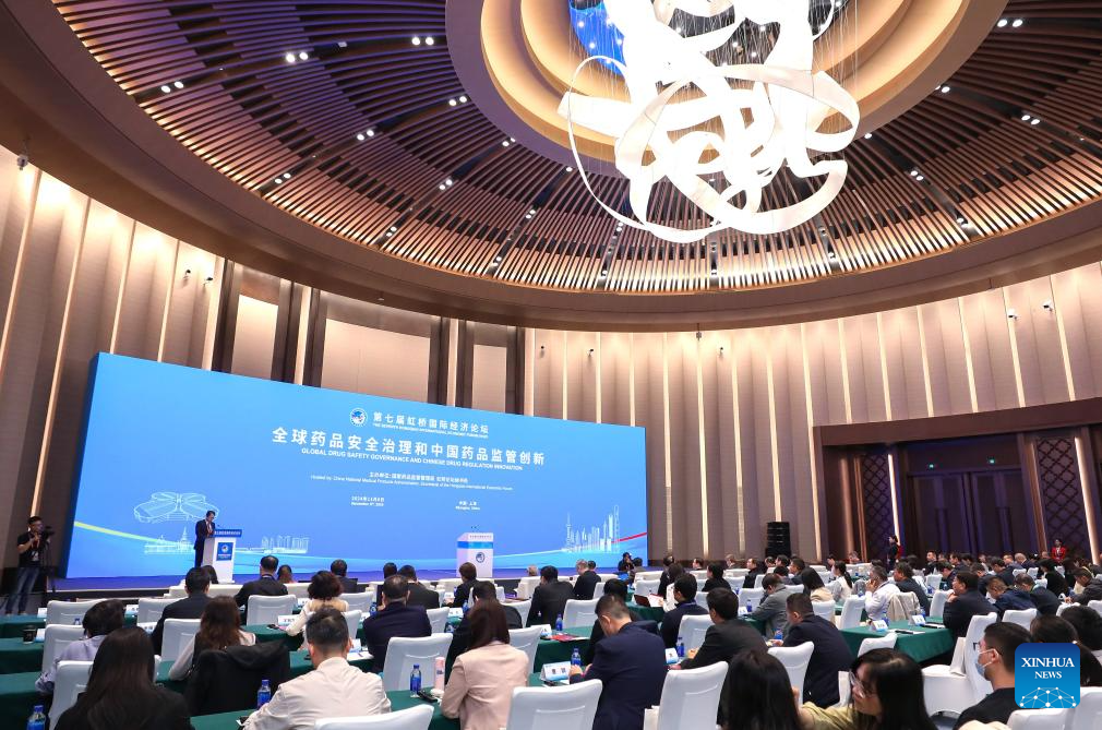 A sub-forum titled "Global Drug Safety Governance and Chinese Drug Regulation Innovation" is held during the 7th Hongqiao International Economic Forum in Shanghai, east China, Nov. 6, 2024. (Xinhua/Du Xiaoyi)