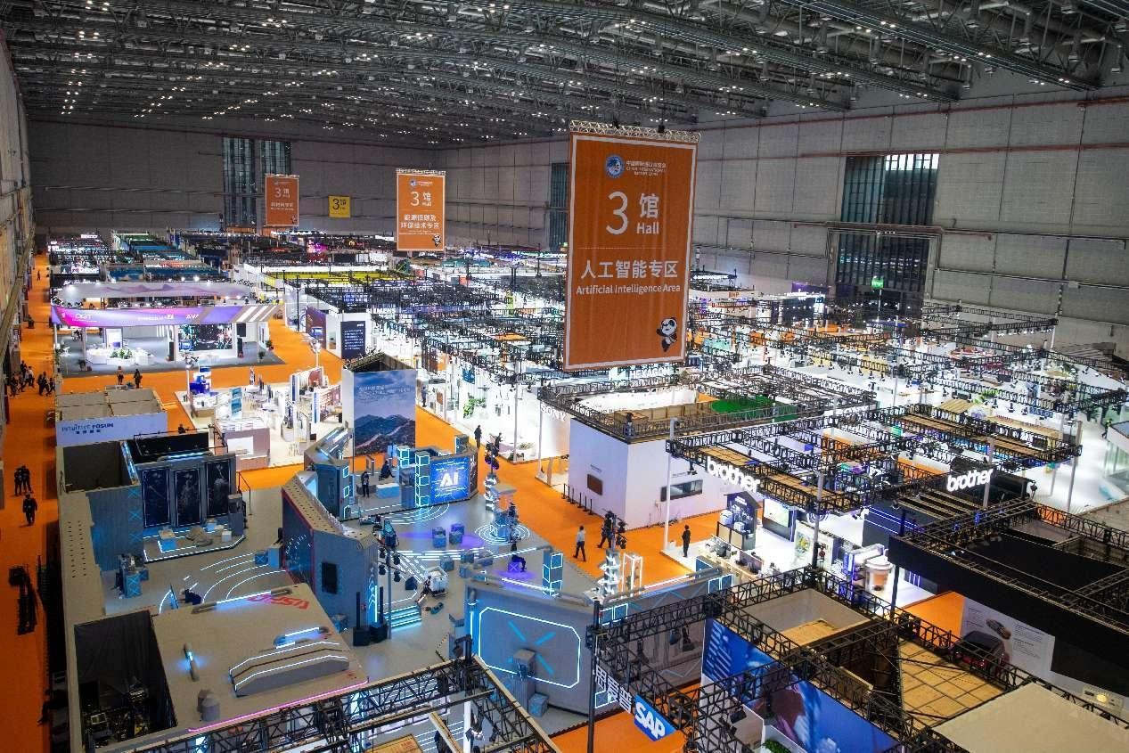 Photo shows the artificial intelligence section and the low-carbon energy and environmental protection technology section of the 7th China International Import Expo (CIIE), Nov. 3, 2024. (People's Daily Online/Weng Qiyu)
