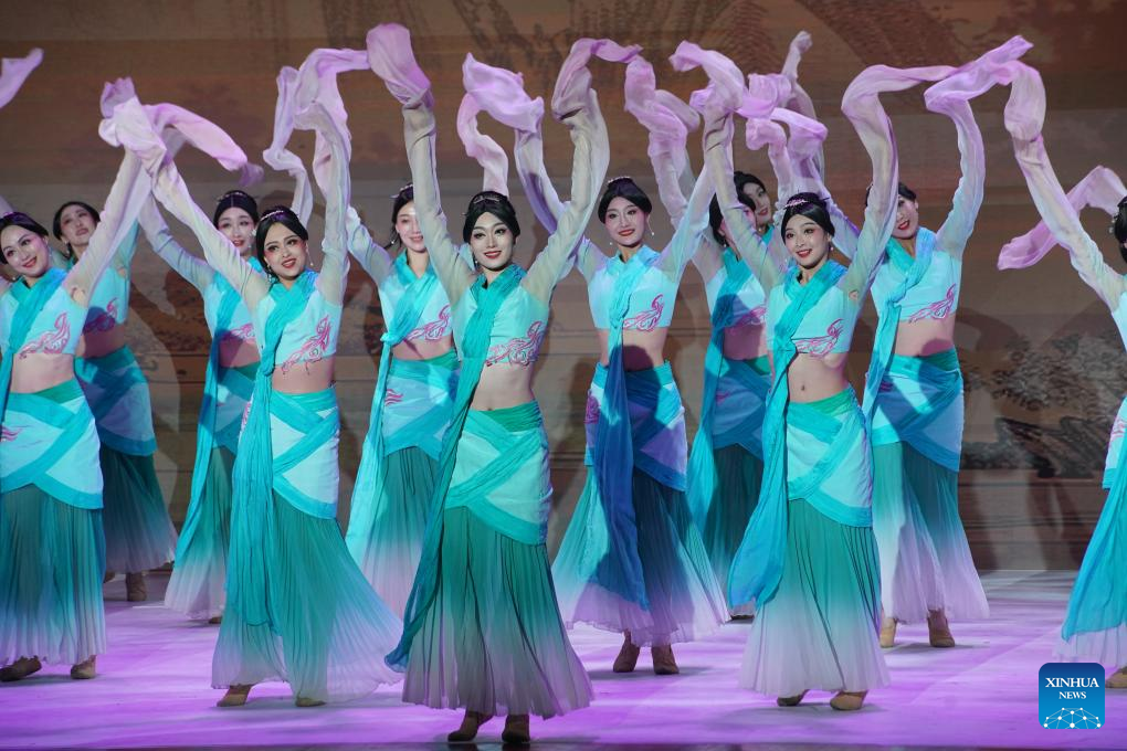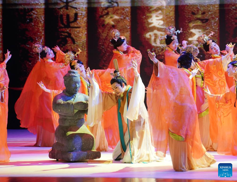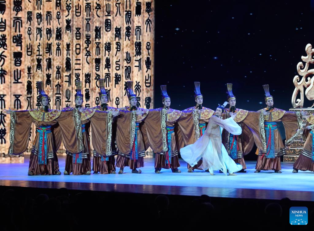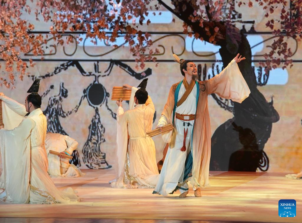 Dancers perform a Chinese dance drama "Confucius" at the National Museum of China in Beijing, capital of China, Nov. 6, 2024. A special performance for the World Conference of Classics was staged here on Wednesday. The conference is slated from Nov. 6 to 8 in Beijing. (Xinhua/Zhang Chenlin)