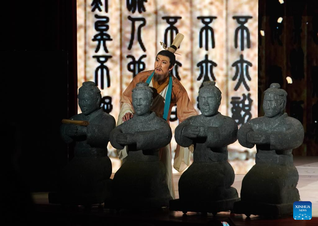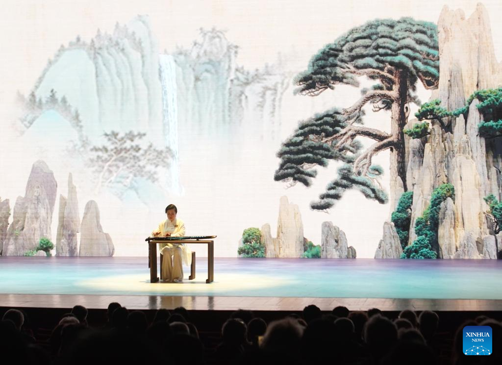 An artist performs a classic of China at the National Museum of China in Beijing, capital of China, Nov. 6, 2024. A special performance for the World Conference of Classics was staged here on Wednesday. The conference is slated from Nov. 6 to 8 in Beijing. (Xinhua/Zhang Chenlin)